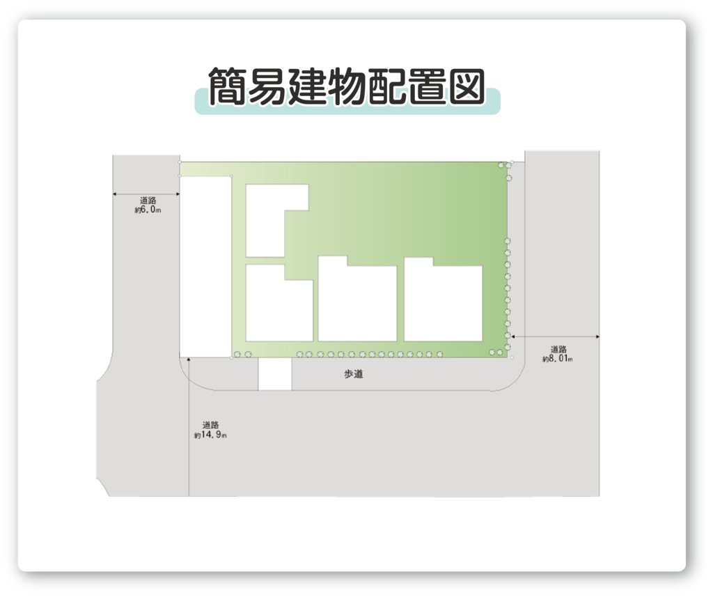簡易建物配置図(1階配置図付)等の特殊間取図を制作いたします。