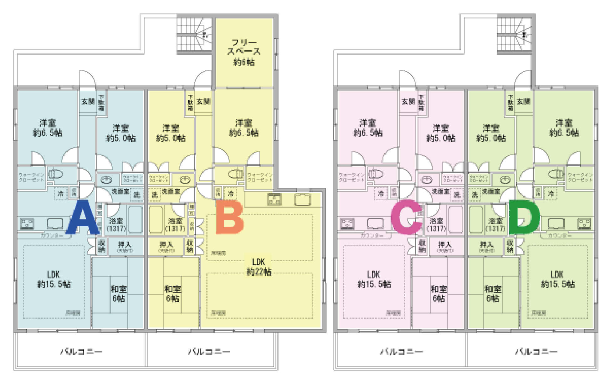 A(165㎡未満)=2,200円 C(Aと同じ間取)=0円 B(165㎡未満)=2,200円 D(Aの反転間取)=1,100円 合計 5,500円 | |||||||